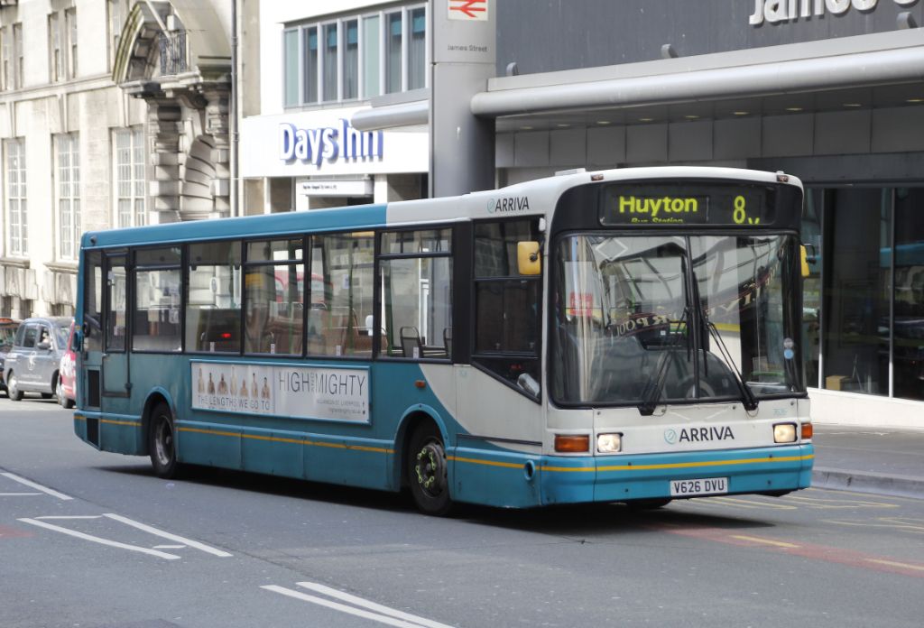 Arriva North West and Wales !999 Dennis Dart SLF/Marshall Capital No.7627 (V626DVU) seen in Liverpoo...