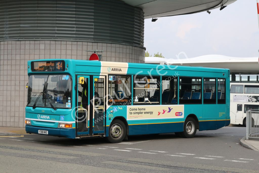 Arriva Midlands 2000 Dennis Dart SLF/Plaxton Pointer MPD No.2106 (Y381HKE) seen leaving Wolverhampto...