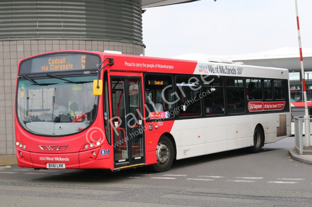 National Express West Midlands 2011 Volvo B7RLE/Wrightbus Eclipse Urban No.2023 (BX61LKJ) seen leavi...