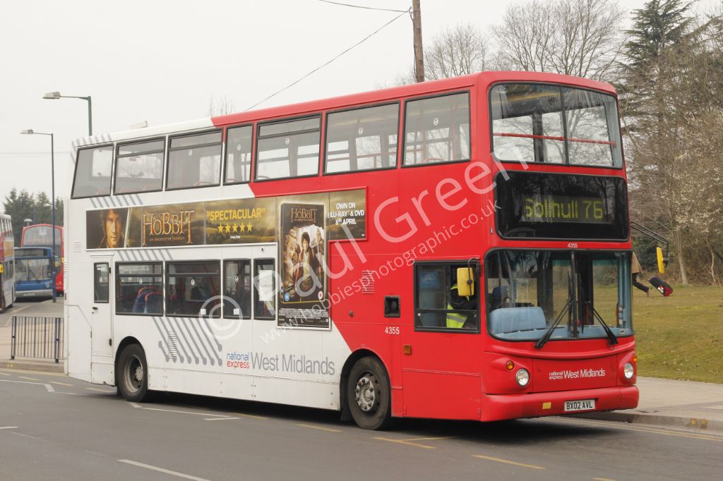 National Express West Midlands 2002 Dennis Trident/Alexander ALX400 No.4355 (BX02AVL) seen at Solihu...