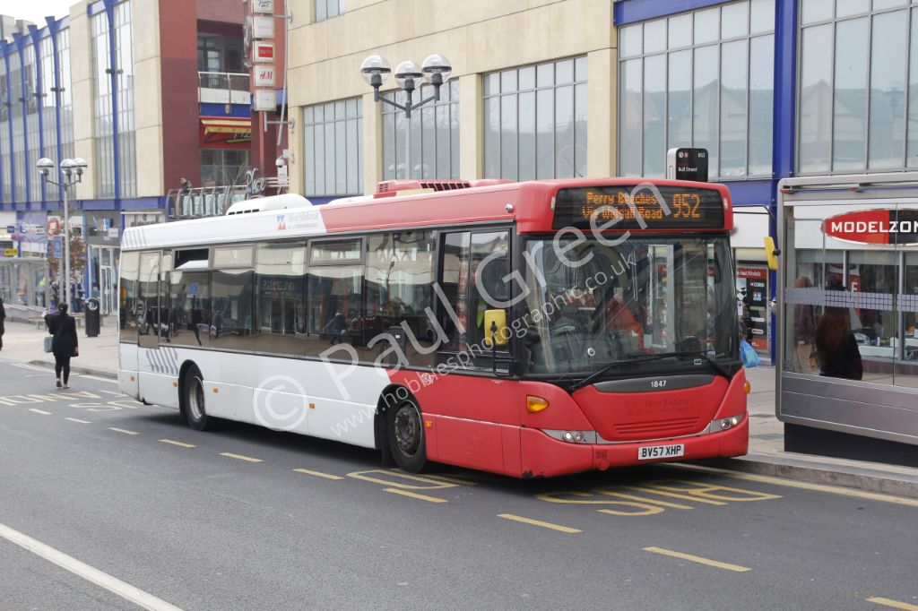 National Express West Midlands 2009 Volvo B7TLE/Wrightbus Eclipse Urban No.1847( BX57XHP) in Central...