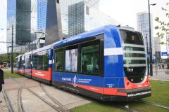 Oslo SL79 tri-axle tram No.115 built in 1989 by ABB Strommen.Seen outside the CityHall on 28th June 2017.