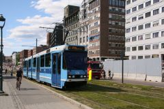 Oslo SL79 tri-axle tram No.126 built in 1989 by ABB Strommen.Seen having just past the City Hall the Town Hall on 28th June 2017.