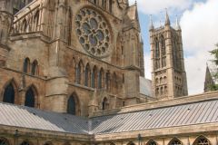 Lincoln Cathedral.Part of the circular window in the South West Tower.The pale blue glass is medieva...