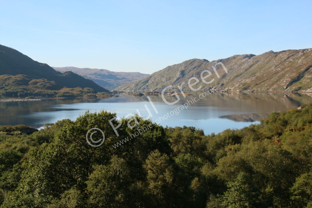 Looking South from the road through Glen More on the Isle of Mull with Lochs Sguabain,an Eilein,an E...