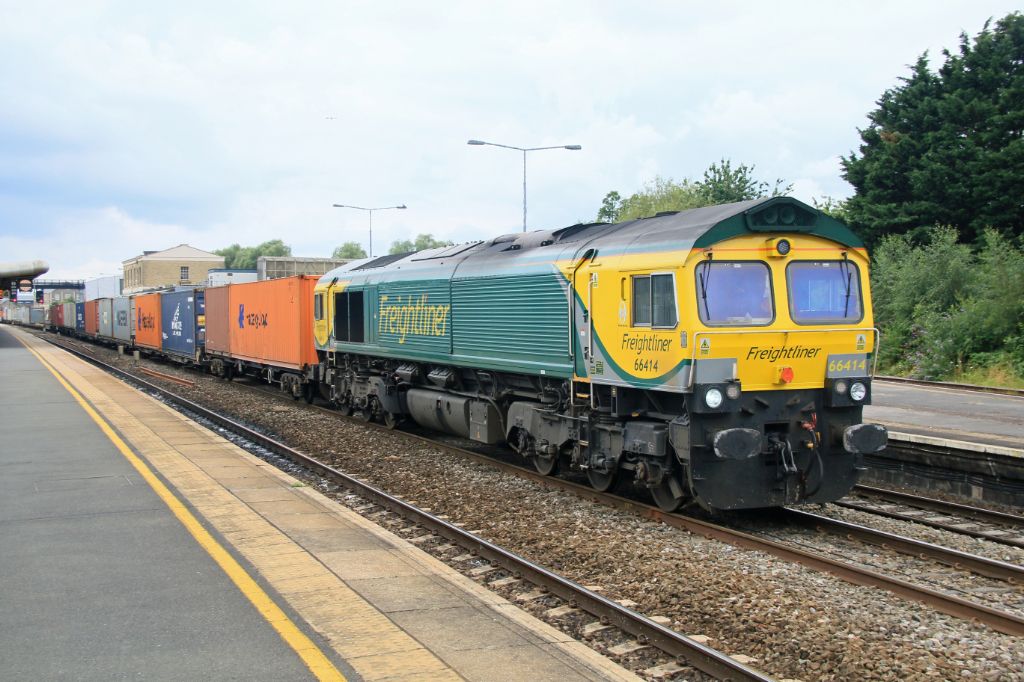 Freightliner Class 66 No.66414 seen on an up service at Swindon on 26th July 2016.