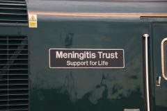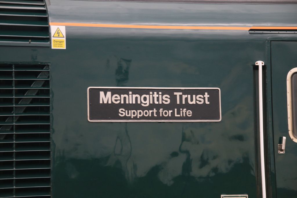 Nameplate on 'Green' GWR HST Power Car No.43041 'Meningitis Trust Support for Life'