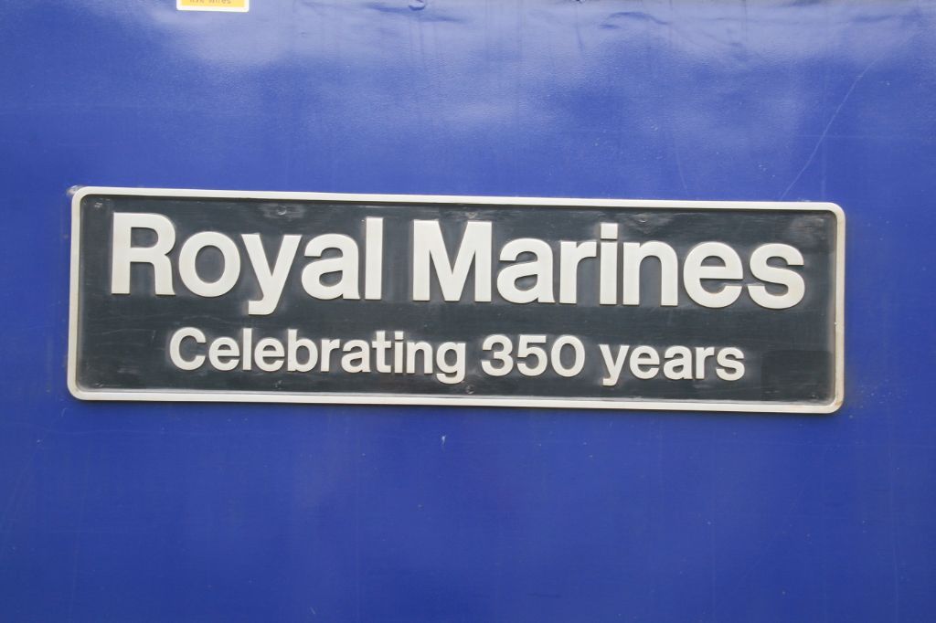 Nameplate on GWR HST Power Car No.43147 'Royal Marines Celebrating 350 years.