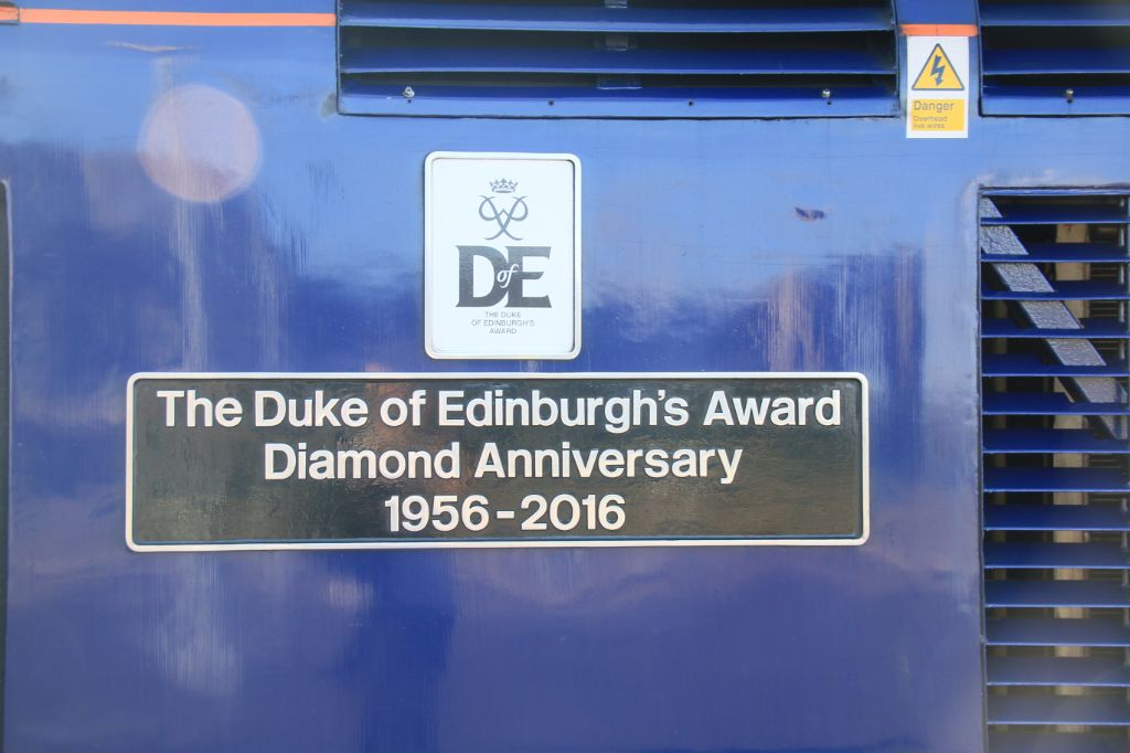 The nameplate on GWR HST Power Car No.43022 'The Duke of Edinburgh's Award Diamond Anniversary 1956-...