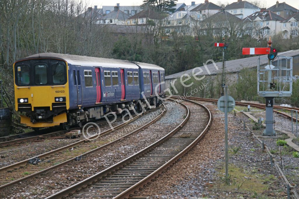 Class 150 No 150123 seen at Truro on 12th April 2016 with a service from Falmouth Docks.