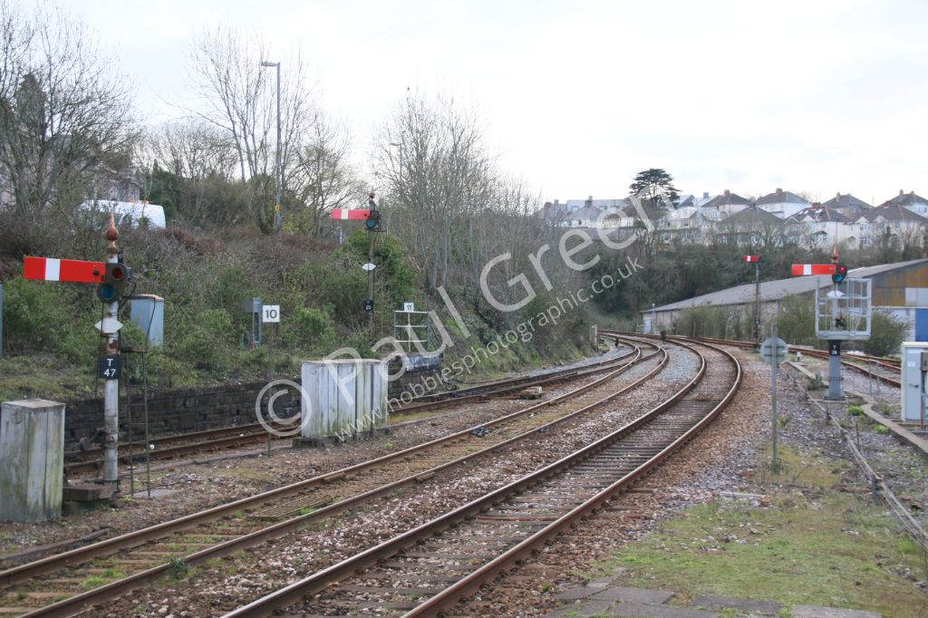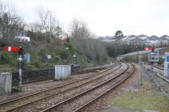 Semiphore signals at Truro on 12th April 2016.