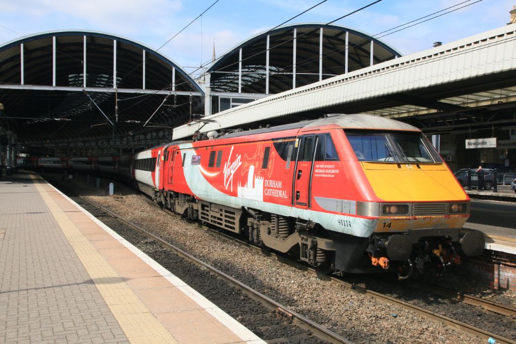 Class 91 No.91114 'Durham Cathedral' at Newcastle Central with the 09:30 Kings Cross Edinburgh servi...