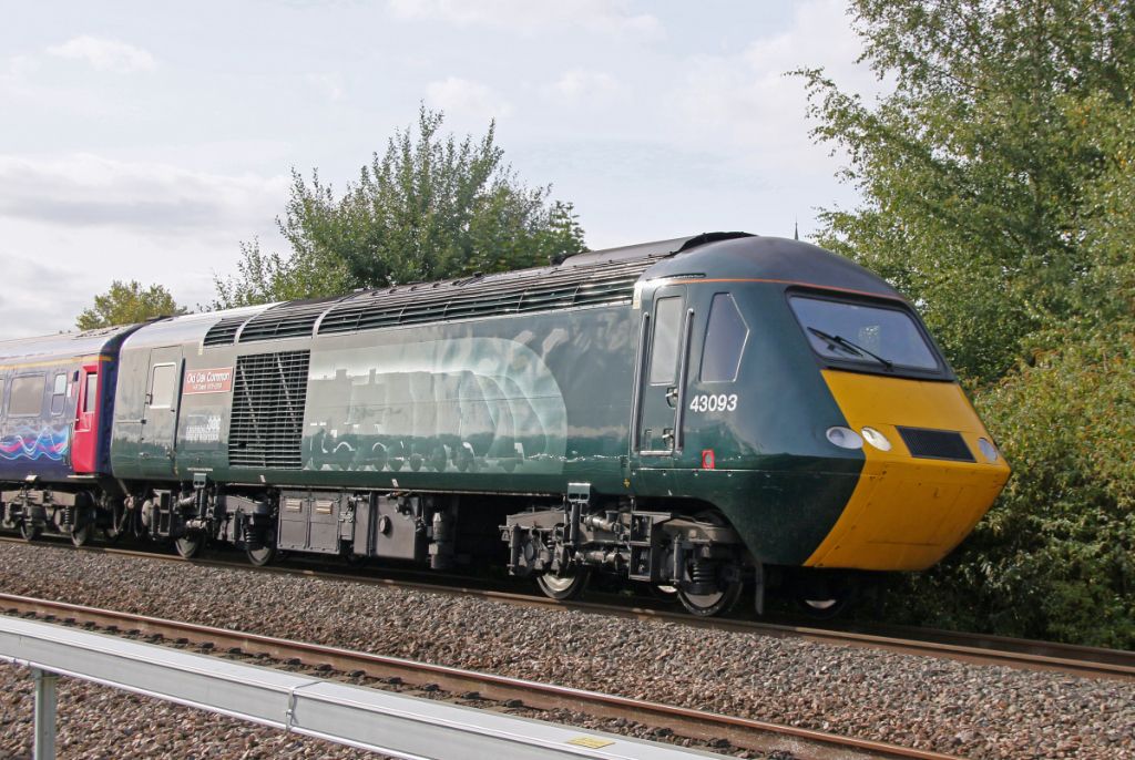 GWR HST Power Car No.43091 at the raer of the 14:30 Bristol Temple Meads to Paddington leaving Chipp...