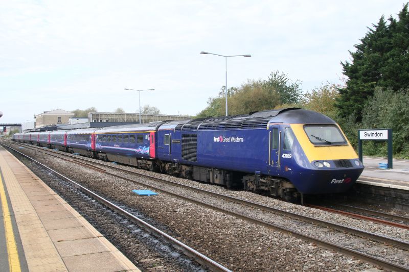 GWR HST Power Car No.43170 heading a seven coach formation on the 14:55 Cardiff to Paddington at Swi...