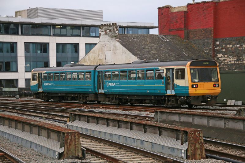 Class 142 No.142081 seen at the head of a four car formation entering Cardiff Central on 17th Octobe...