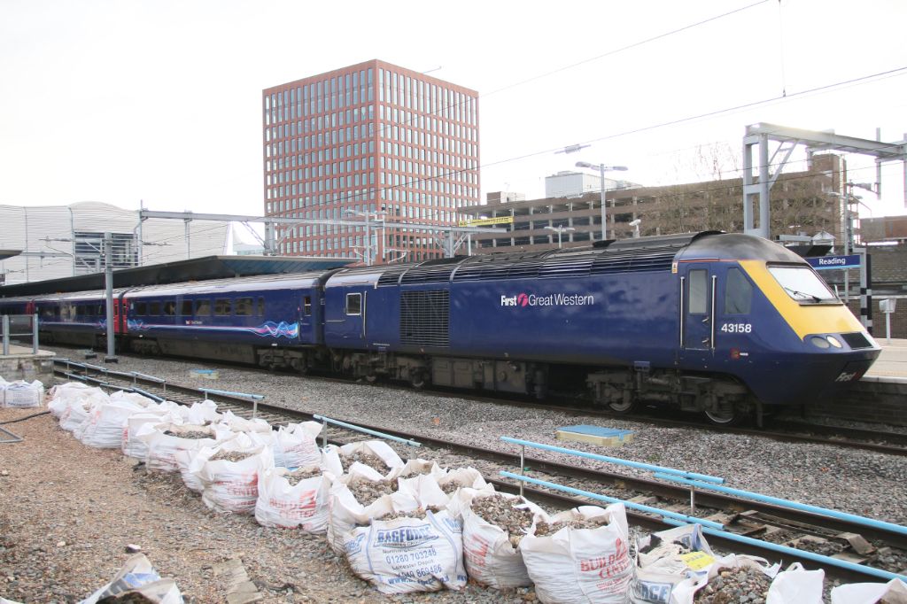 GWR HST Power Car No.43158 at the head of the Cornish Riveria Express leaving Reading on 29th Novemb...