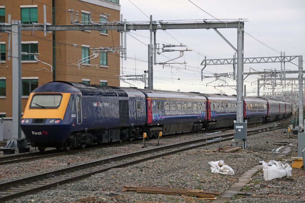 GWR HST Power Car No.43183 at the rear of the Cornish Riveria Express leaving Reading on 29th Novemb...