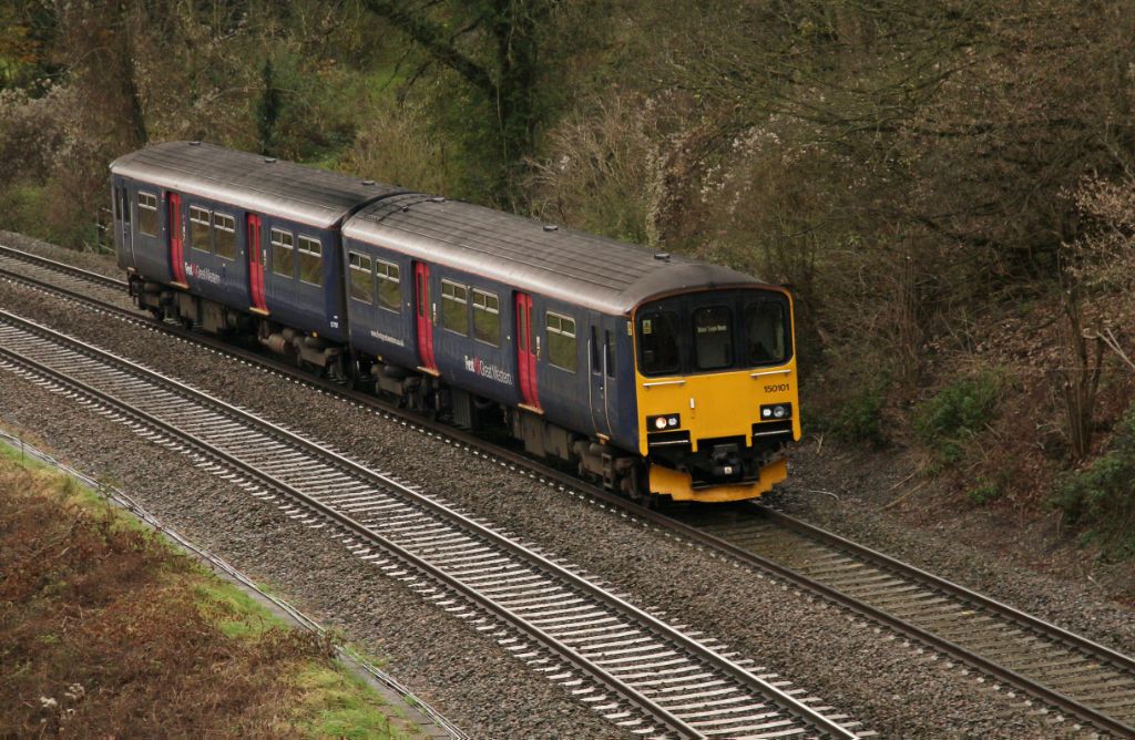GWR Class 150 No.150101 working a Weymouth to Bristol Temple Meads service in the Avon Valley near L...