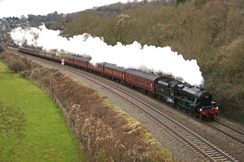 Ex. L.M.S. Stanier Black 5 4-6-0 No.45212 seen on an Alton to Bath and Bristol Cathedrals Express ap...