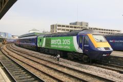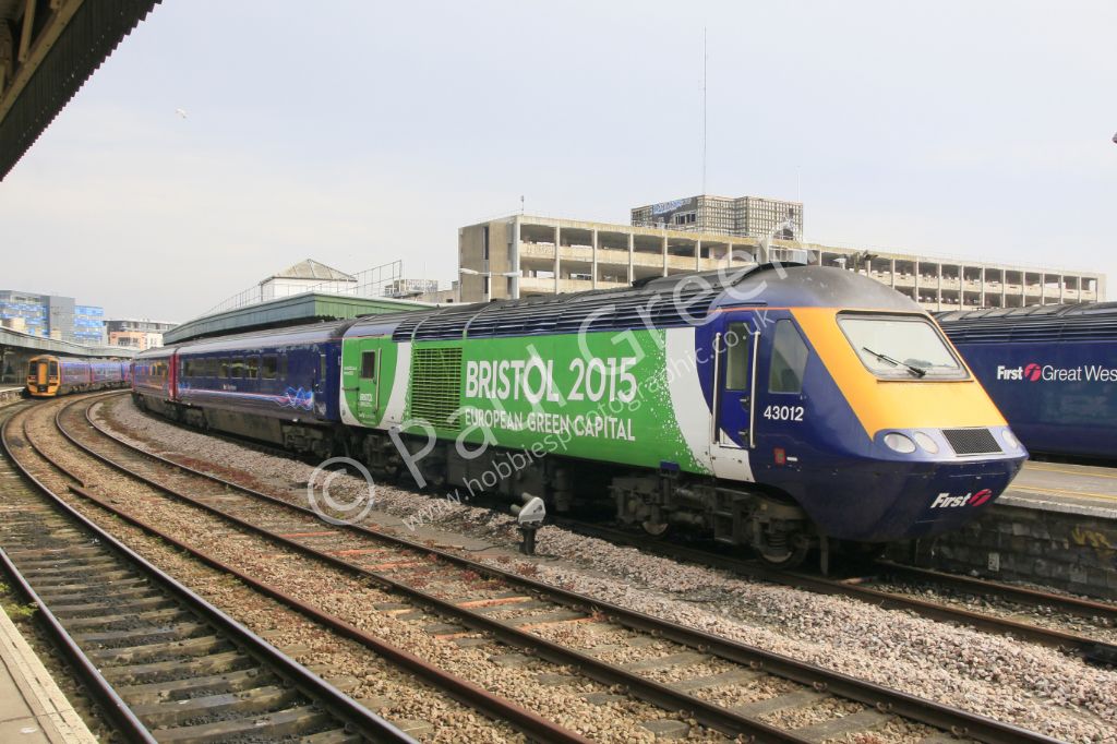 GWR HST with Power Car No.43012 in BRISTOL 2015 Eoropean Green Capital livery at Bristol Temple Mead...