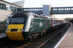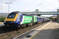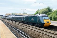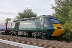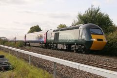 Green GWR HST with Power Car No.43041 'Meningitis Trust Support for Life' leading working the 11.30 ...