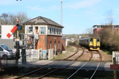 Signal Box and semiphore signals at Truro on 12th April 2016.A three coach train from the Plymouth d...