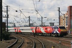 Class 91 No.91101 with 'Flying Scotsman' nameplate and embelishments leaving Newcastle Central on a ...