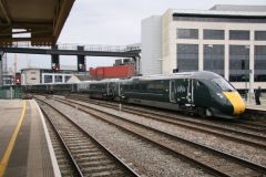 GWR Class 800 IEP No.800009 at the rear of the 13:45 Paddington to Swansea at Cardiff Central on 17t...