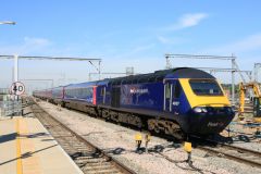 GWR HST Power Car No.43034 at the head of an up service entering Westbury on 8th July 2017.