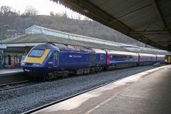 GWR HST Power Car No.43004 at the rear of the 13:30 Paddington to Bristol T.M. seen under the canopi...
