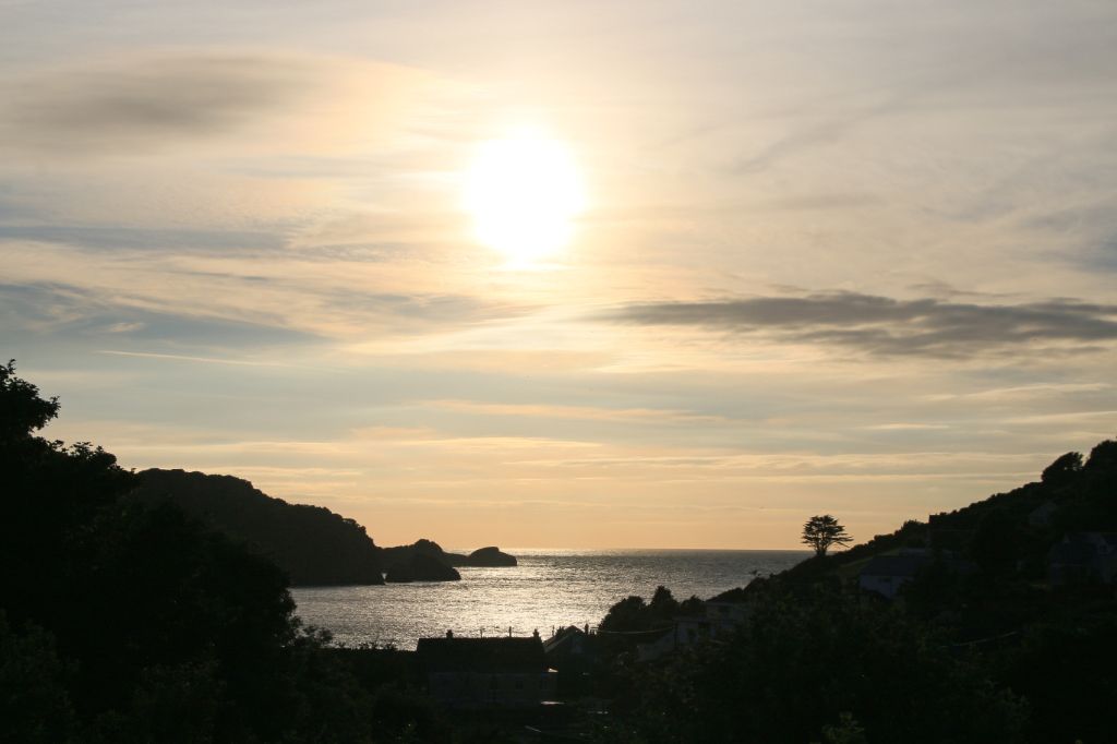 Looking into the setting sun over Combe Martin Bay on 5th July 2016.
