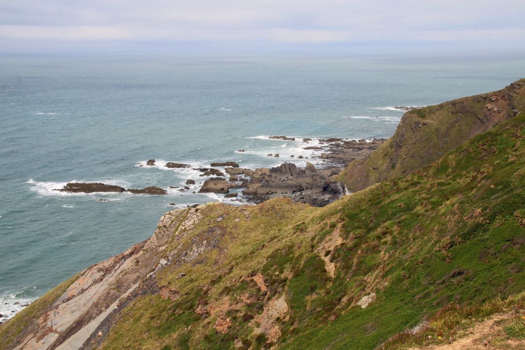 Views from Hartland Quay.The wonderful folds in the cliffs behind warren Beach,7th July 2016.