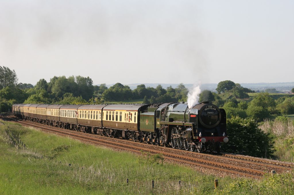 BR Britannia Class Pacific No.70013 Oliver Cromwell climbing to Upton Scudamore Summit between Westb...