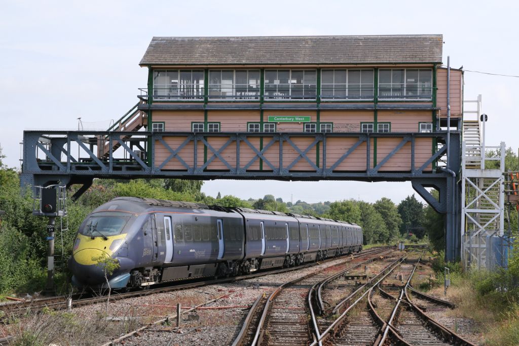 Class 395 Javelin No.395006 'Daly Thompson' seen at Canterbury West on July 4th 2018 with the 09:09 ...