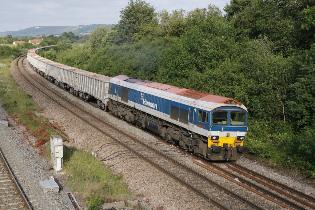 Freightliner Class 66/5 No.66554 working a civil engineering train at Fairwood Junc. on 26th June 20...