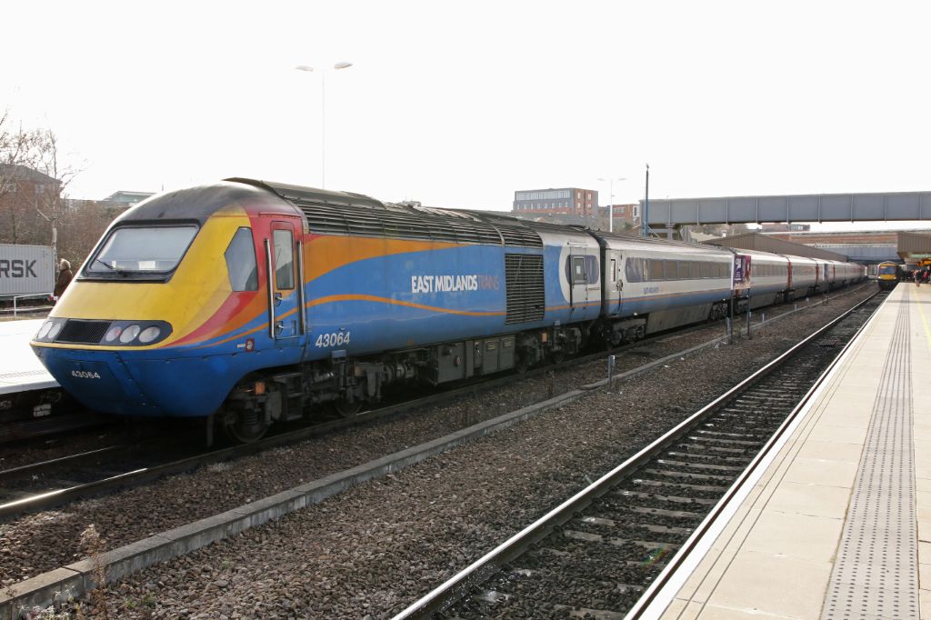 East Midlands HST Power Car No.43064 at the rear of the 11:45 Nottingham to St.Pancras entering Leic...