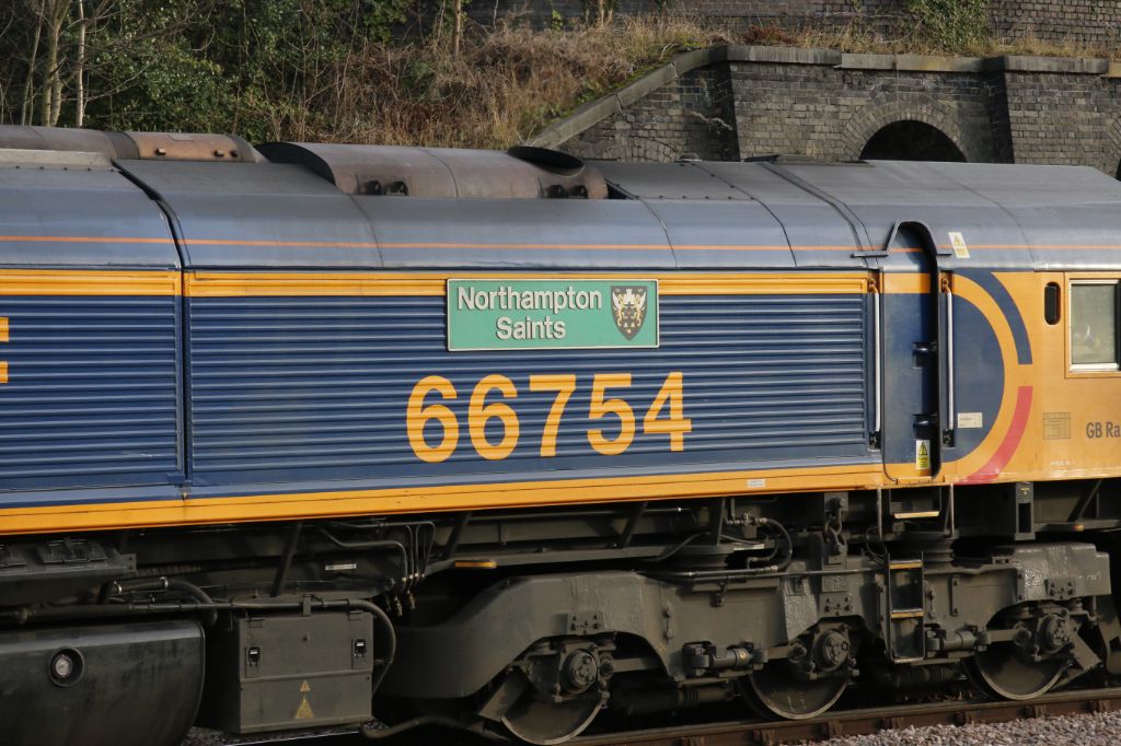 GBRf Class 66 No.66754 'Northampton Saints' on a down Freightliner service at Leicester on 13th Febr...