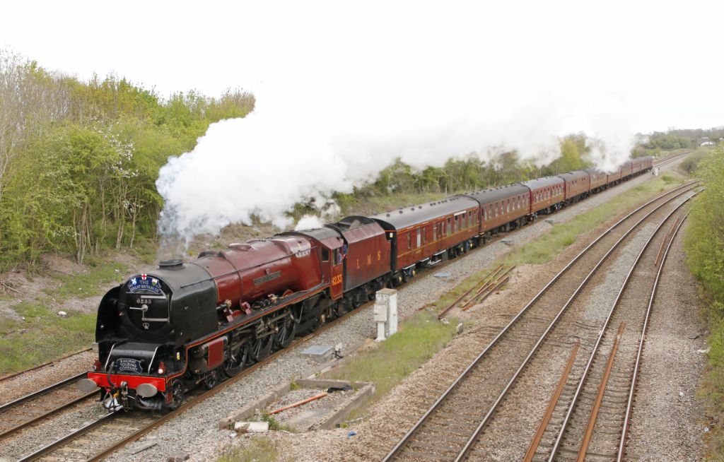 LMS Stanier 'Coronation' Pacific No.6233 'Duchess of Sutherland' hauling the second leg of the 'The ...