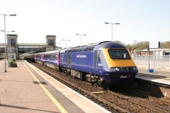 HST Power Car No.43002 leading an up Paddington service in Exeter St.Davids on 8th April 2011.