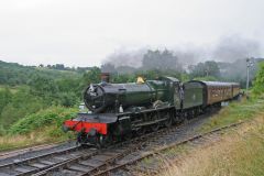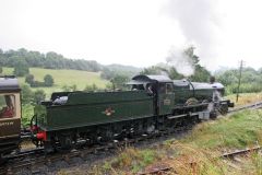 Ex GWR Manor Class 4-6-0 No.7812 Erlestoke Manor leaving Highley Station in the pouring rain with a ...