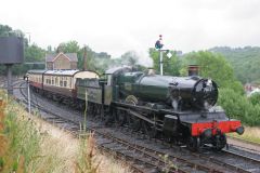 Ex GWR Manor Class 4-6-0 No.7802 Bradley Manor arriving at Highley Station with a Bridgenorth bound ...