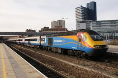 East Midlands HST Power Car No.43044 heading the 10:34 St.Pancras to Nottingham at Leicester on 13th...