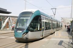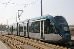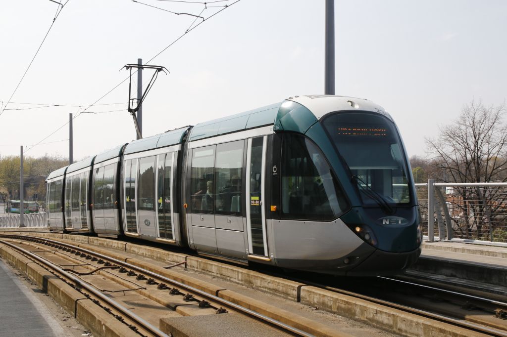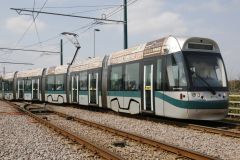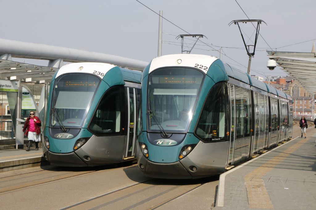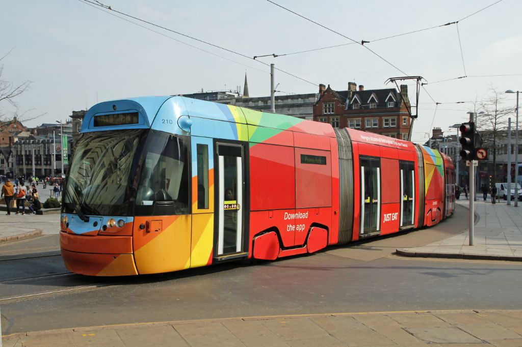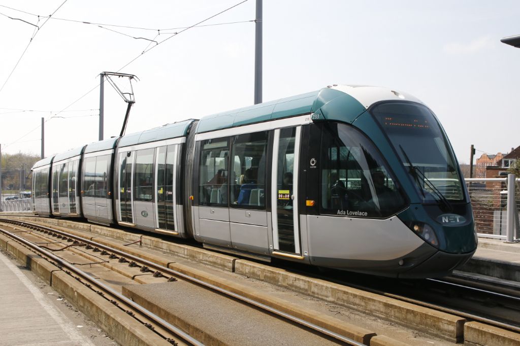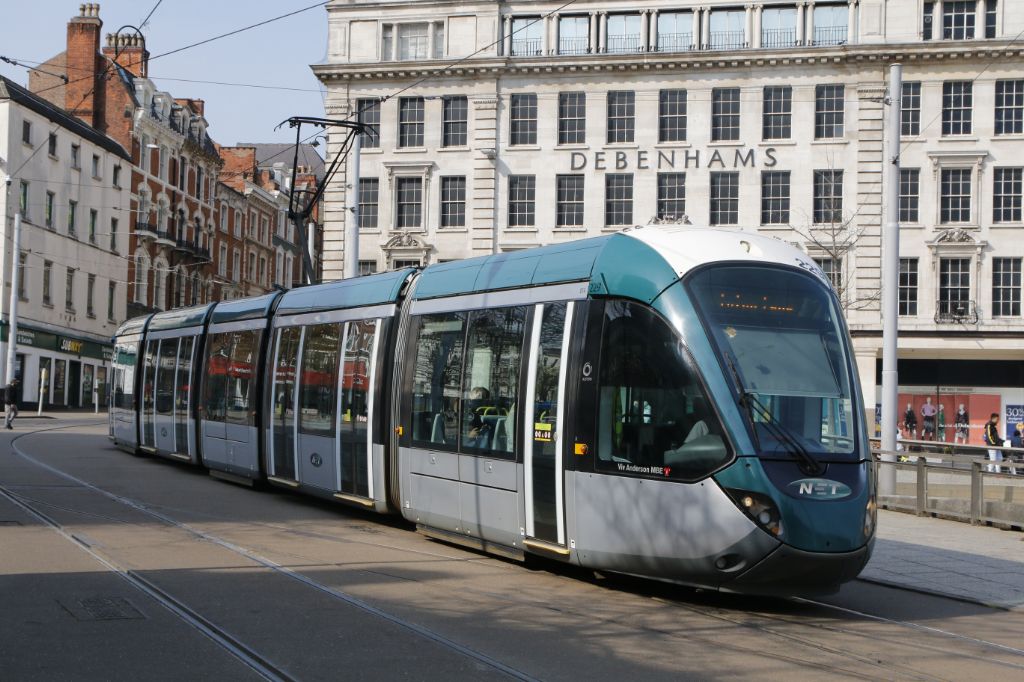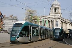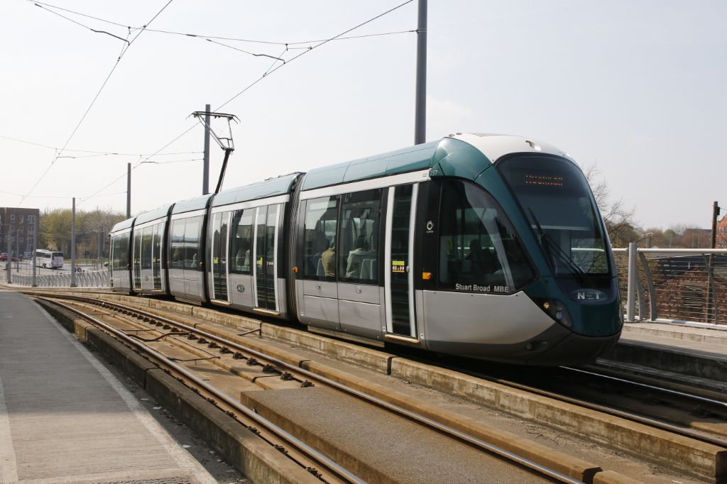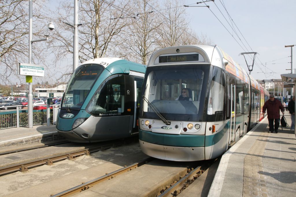 2013/14 Alstrom Incentro 302 No.222 leaves Nottingham Station on a Hucknall to Toton Lane service a...