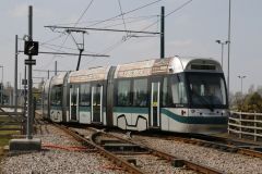 2004 Bombardier Incentro No.213 leaving Toton Lane on 16th April 2019 with a service to Hucknall.