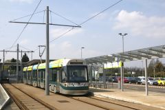 2013/14 Alstrom Incentro 302 No.217 seen at Toton Lane on 16th April 2019 with a service to Hucknal...