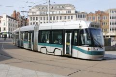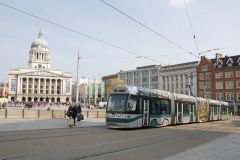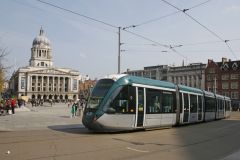 With the City Hall in the background 2013/14 Alstrom Incentro 302 No.224 is seen in Old Market Squar...