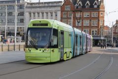 2004 Bombardier Incentro No.210 is seen on 16th April in Old Market Square with a train for Phoenix ...