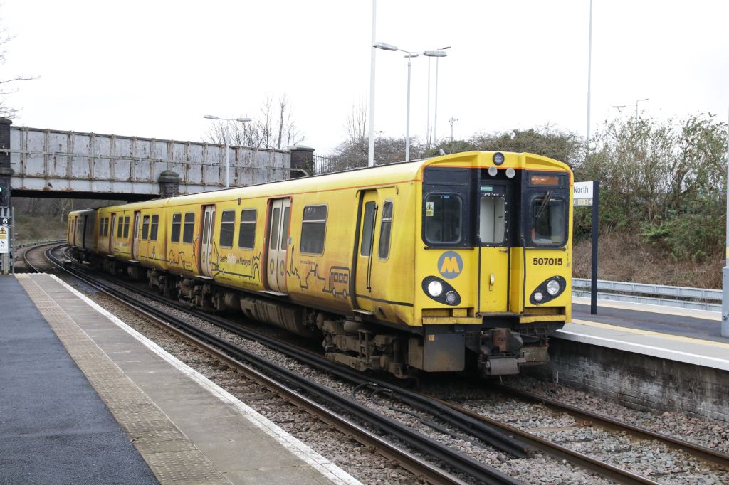 507015 atBirkenhead North with a Liverpool bound on 25th February 2019.