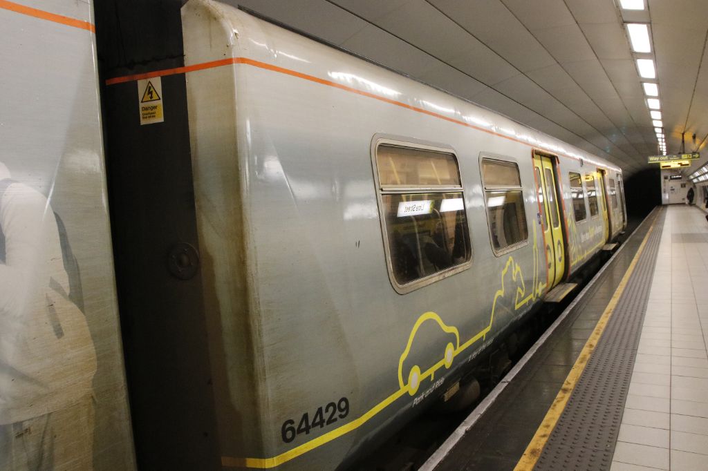 507015 leaving Birkenhead North with a Liverpool bound on 25th February 2019.