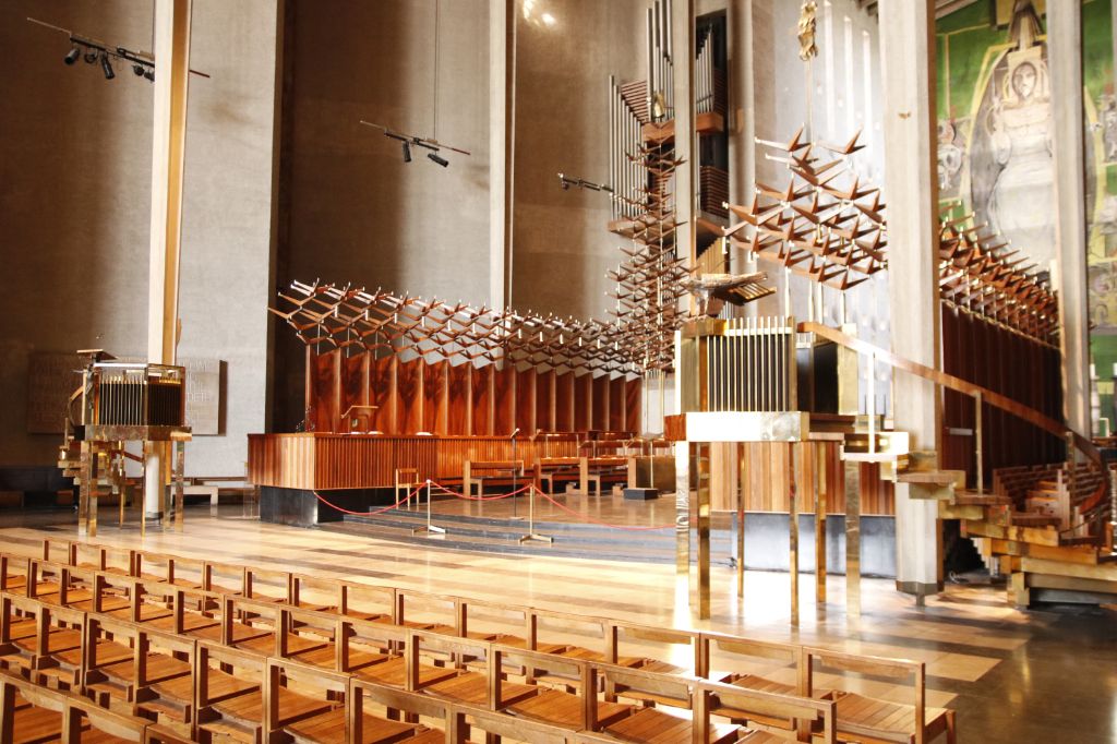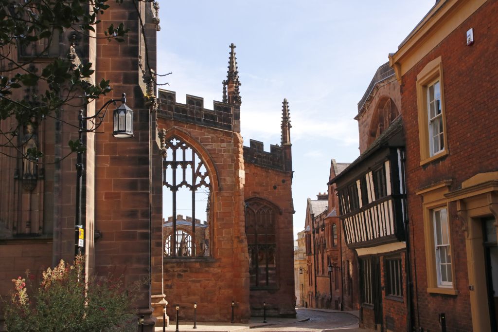 he current St Michael's Cathedral, built next to the remains of the old, was designed by Basil Spenc...